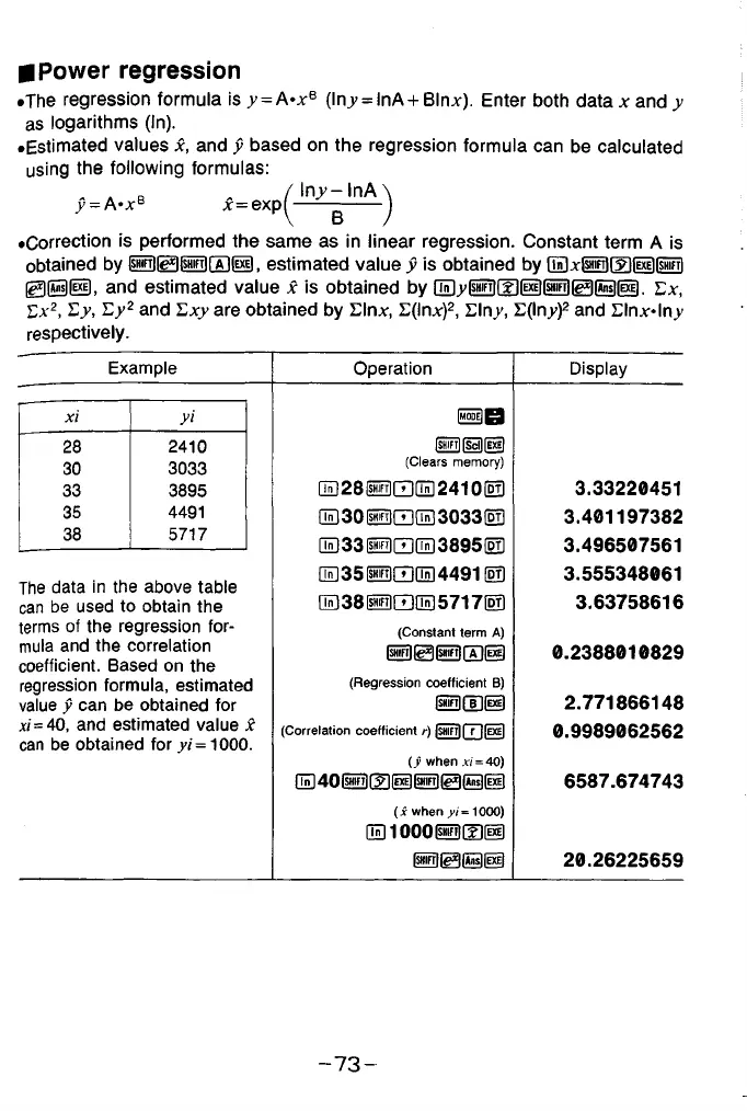 •The regression formula is y = A-xB (lny = lnA +Blnx). Enter both data x and y