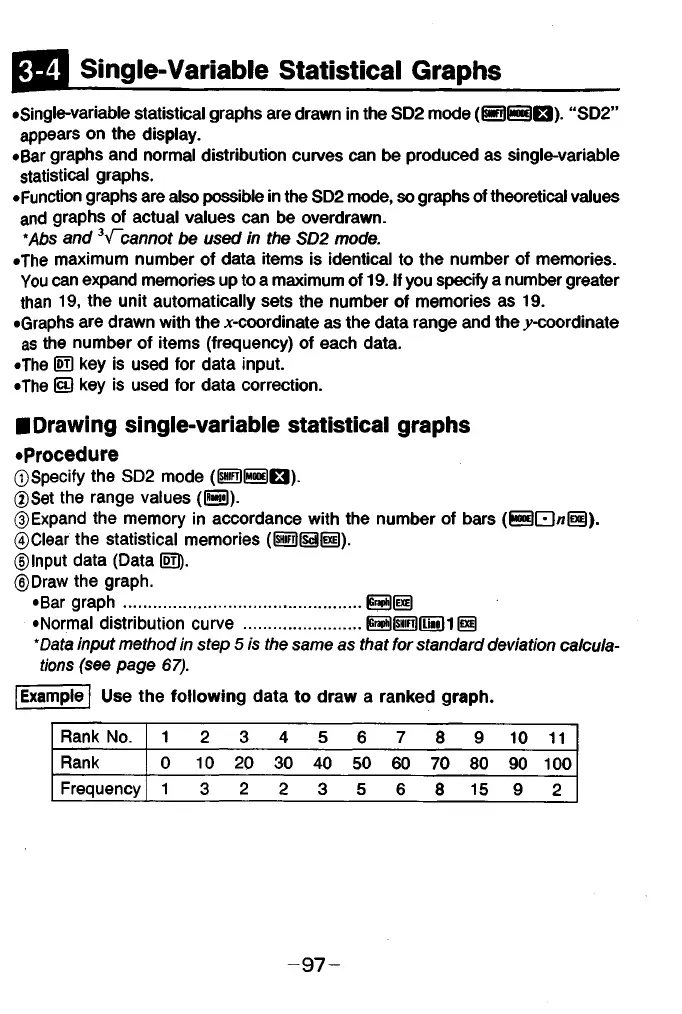 •Single-variable statistical graphs are drawn in the SD2 mode (@ @ Q ). “SD2”