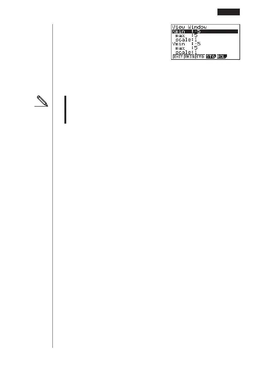 View Window [X min value], [X max value], [X scale value],