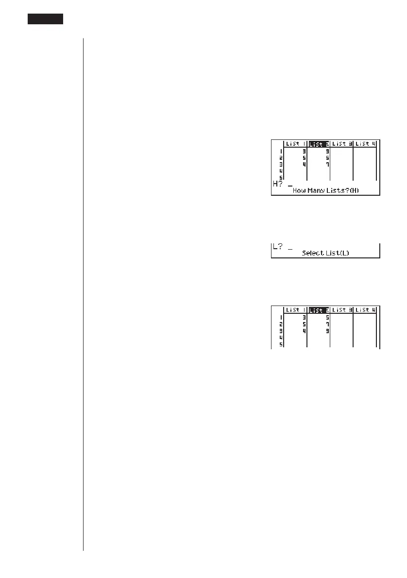 2. The prompt “How Many Lists? (H)” appears to ask how many lists you want to