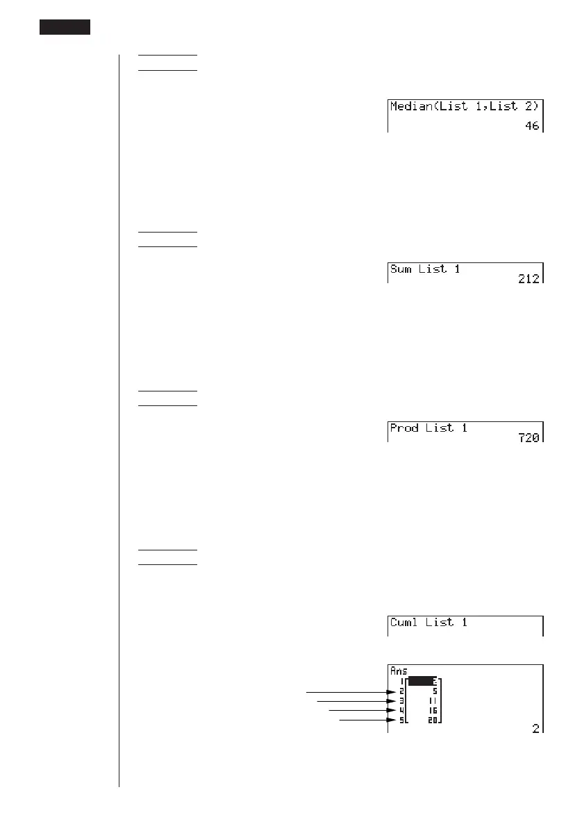 Example To calculate the sum of products for the values in List 1 (2, 3, 6, 5, 4)