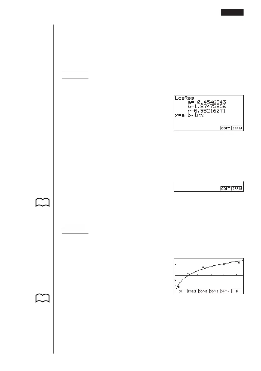 Example To display logarithmic regression parameter calculation results