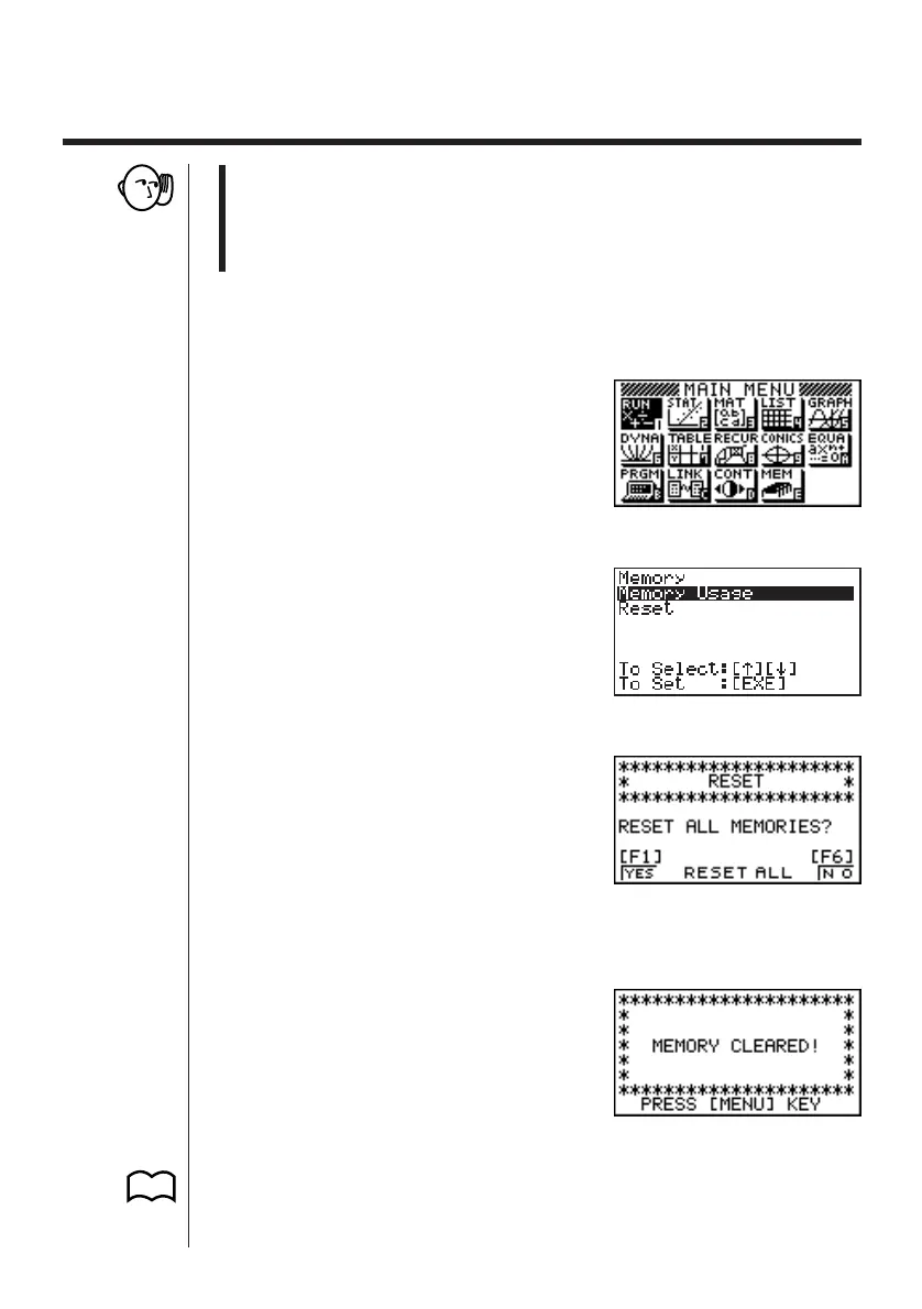 The procedure described here clears all memory contents. Never perform this op-