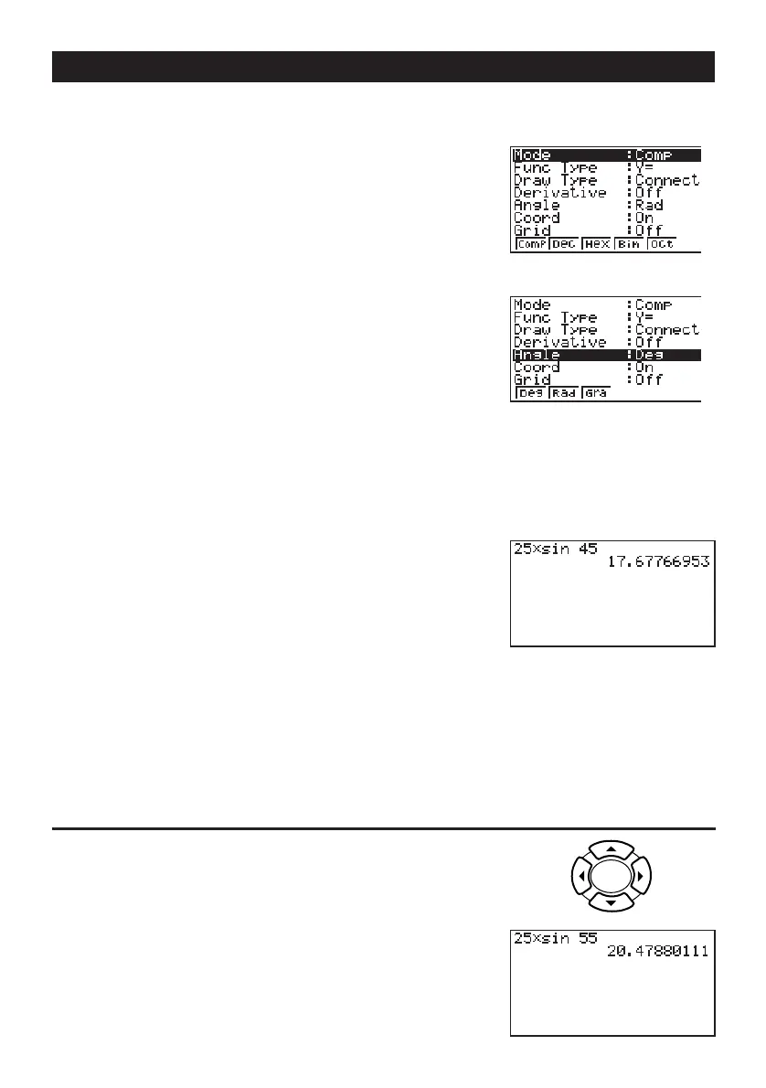 To change the calculation in the last example from (25 × sin 45˚) to (25 × sin 55˚)