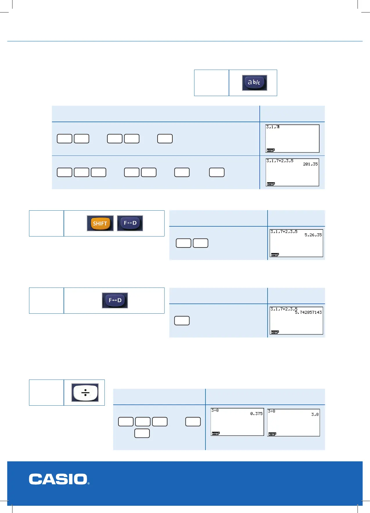Casio fx9750GII - GETTING STARTED (Continued); Fractions, Decimals, Percentages