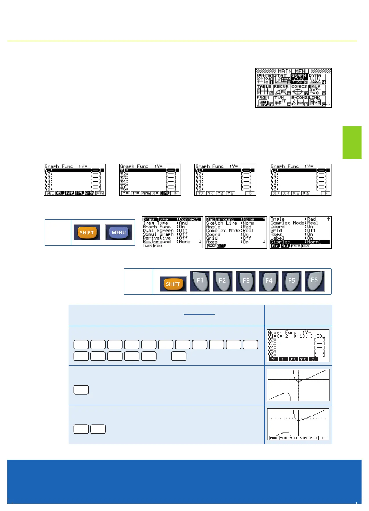 All of the ‘Function’ key menus, such as Trace, Zoom, V-Window, Sketch, Graphical Solutions and Graph - Text