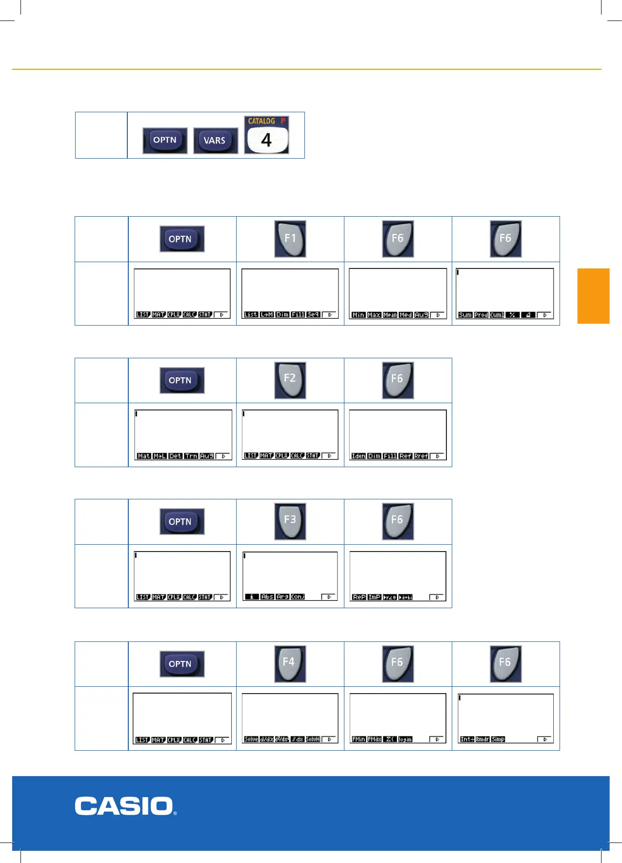 Casio fx9750GII - OPTION, VARIATIONS AND CATALOGUE KEYS; OPTN, VARS, CATALOG Overview; Mathematical Functions via OPTN