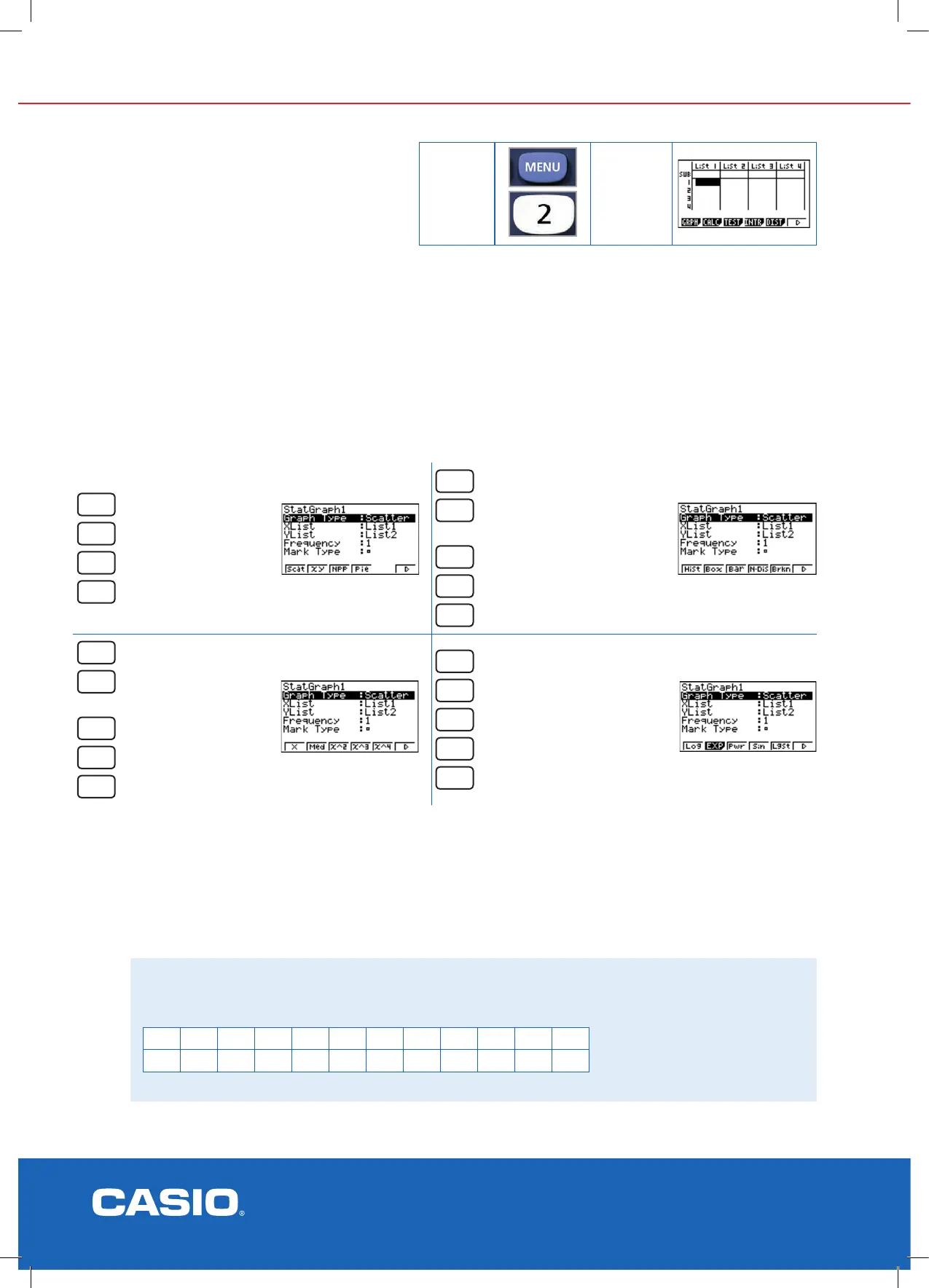 calculation or graph types required and the lists you are using to calculate the numerical statistics and drawing statistical