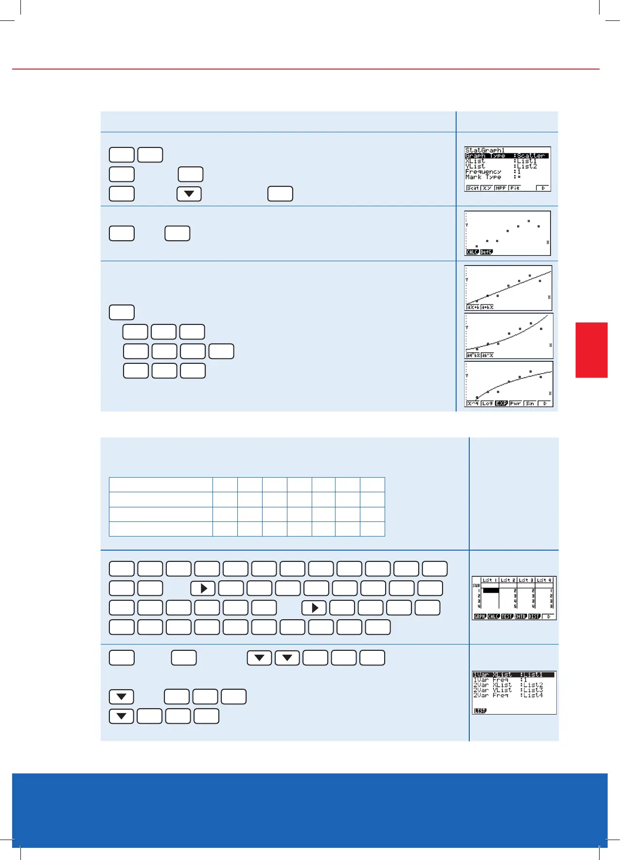 the data. Set up the lists so the List 2 is the x-values, List 3 is the y-values and List