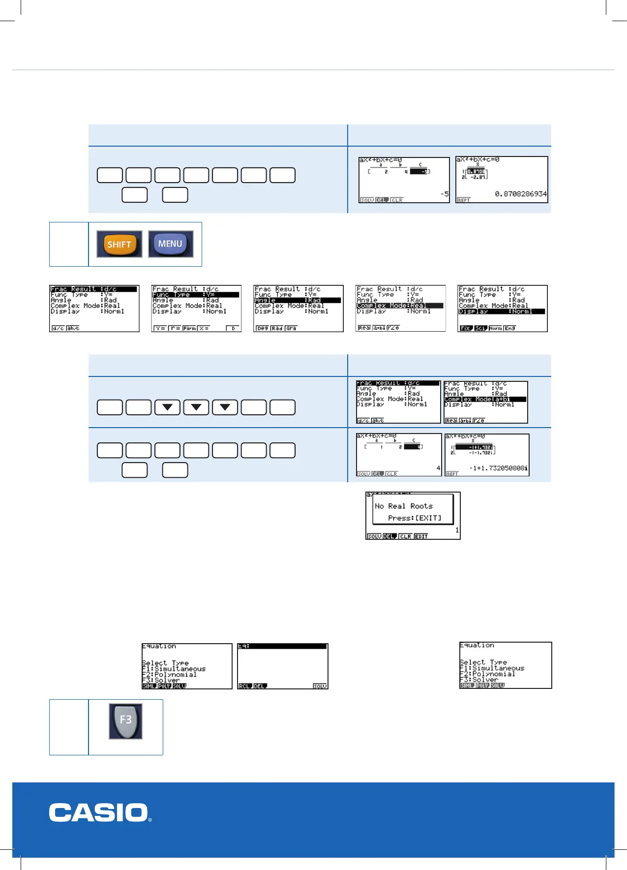 For solving the appropriate degree polynomial, enter the appropriate degree via the Function key and then enter the