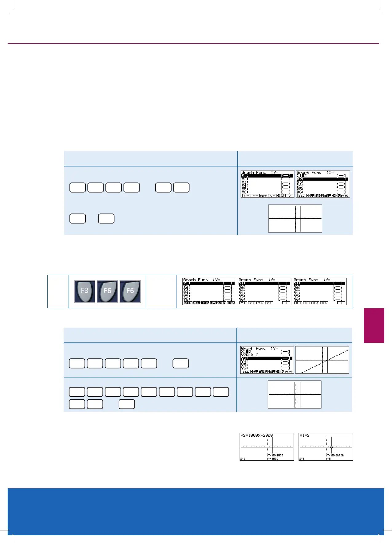 key to go back to the Graph Func: window. Vertical lines x = c, found by menu trail: [F3] for TYPE then [F4] for x =