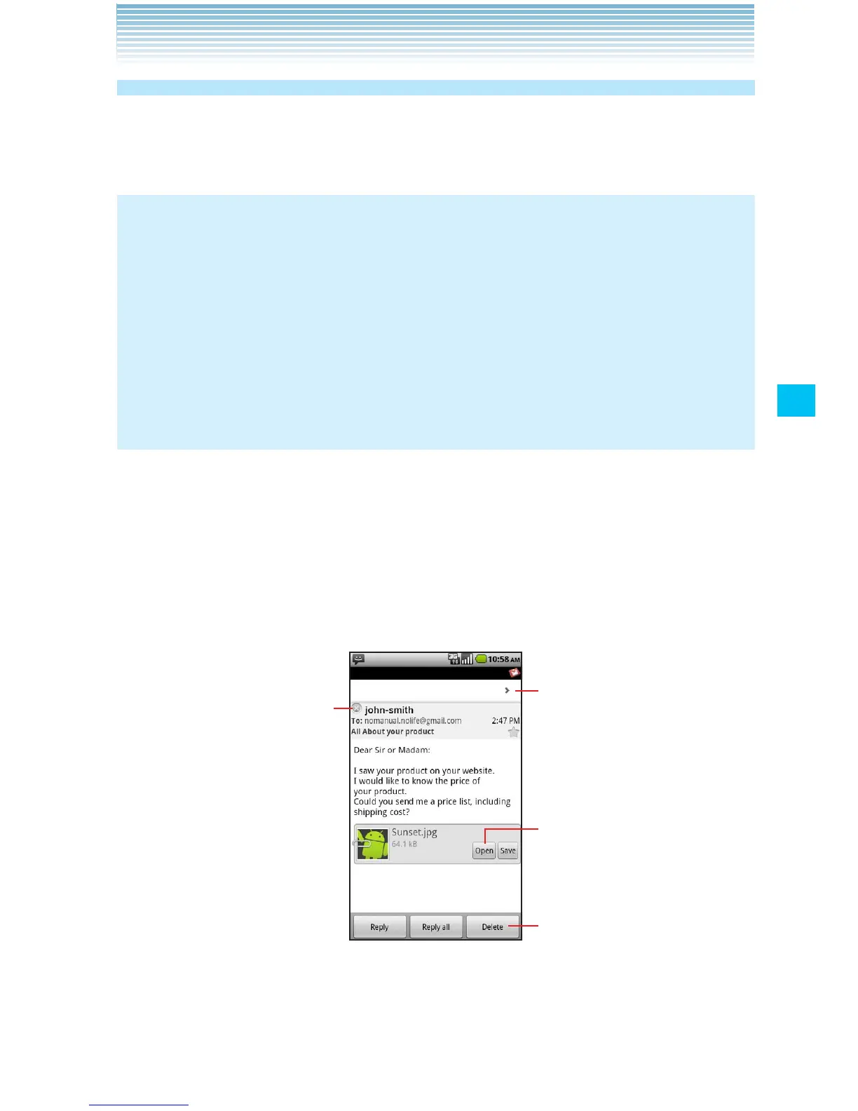 The message opens in a screen with information about who sent it,