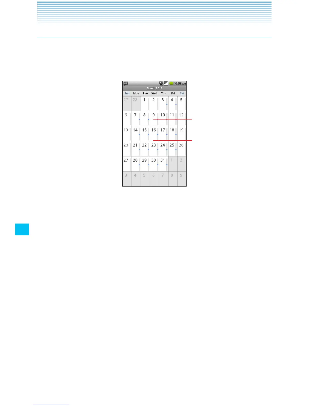 Touch a day to view its events in Day view. •