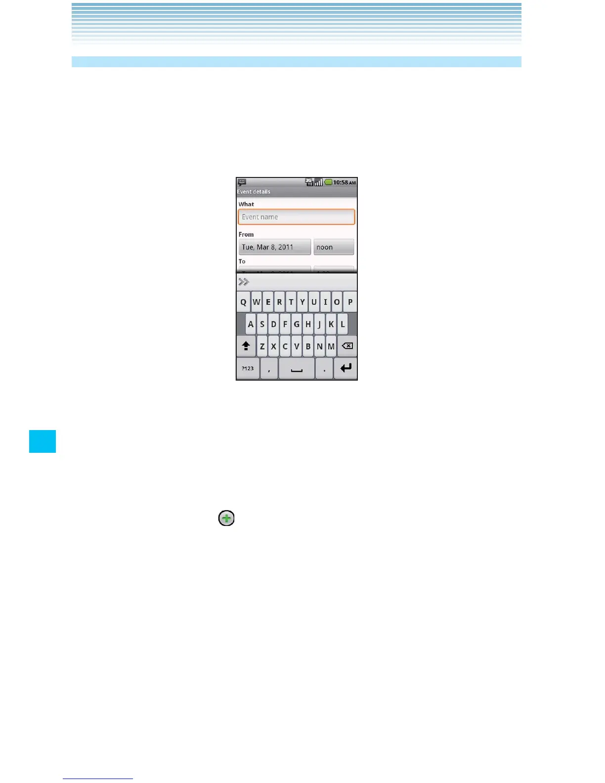 1. In any Calendar view, touch the Menu key M > More > New event