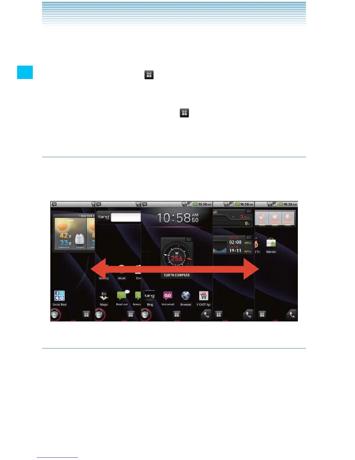 Home screen and its extensions, which you can touch to open.