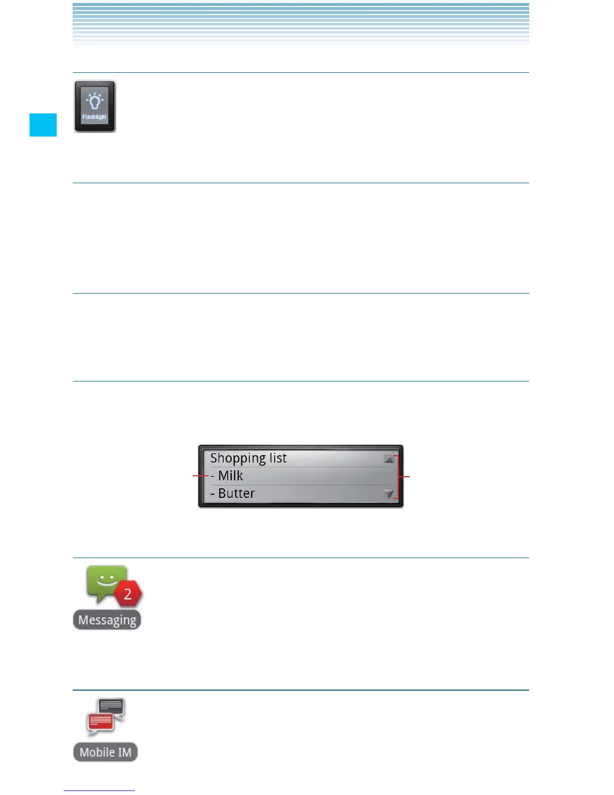 Touch the Flashlight widget to turn the Flashlight on or off.
