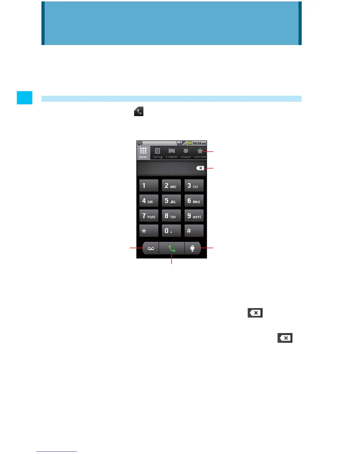 If you enter a wrong number, touch the delete icon • to erase