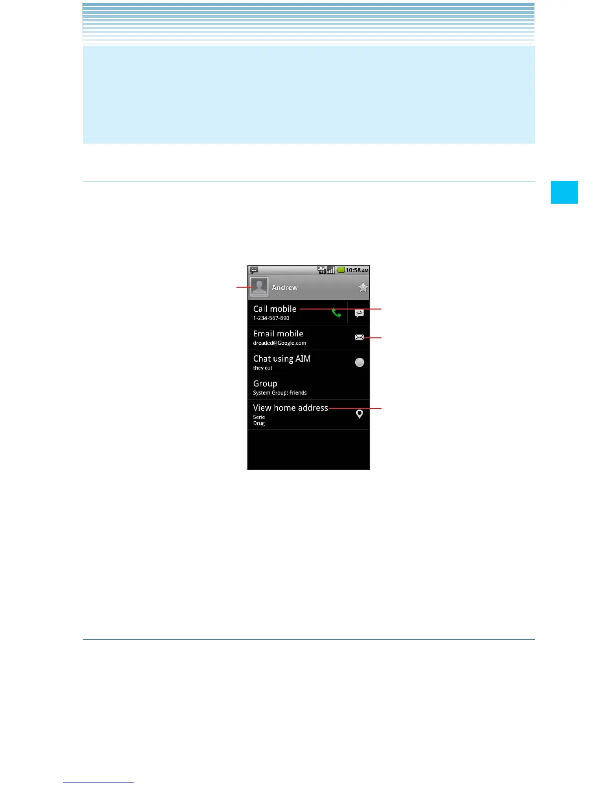 You can edit the contact’s information by touching the Menu key •