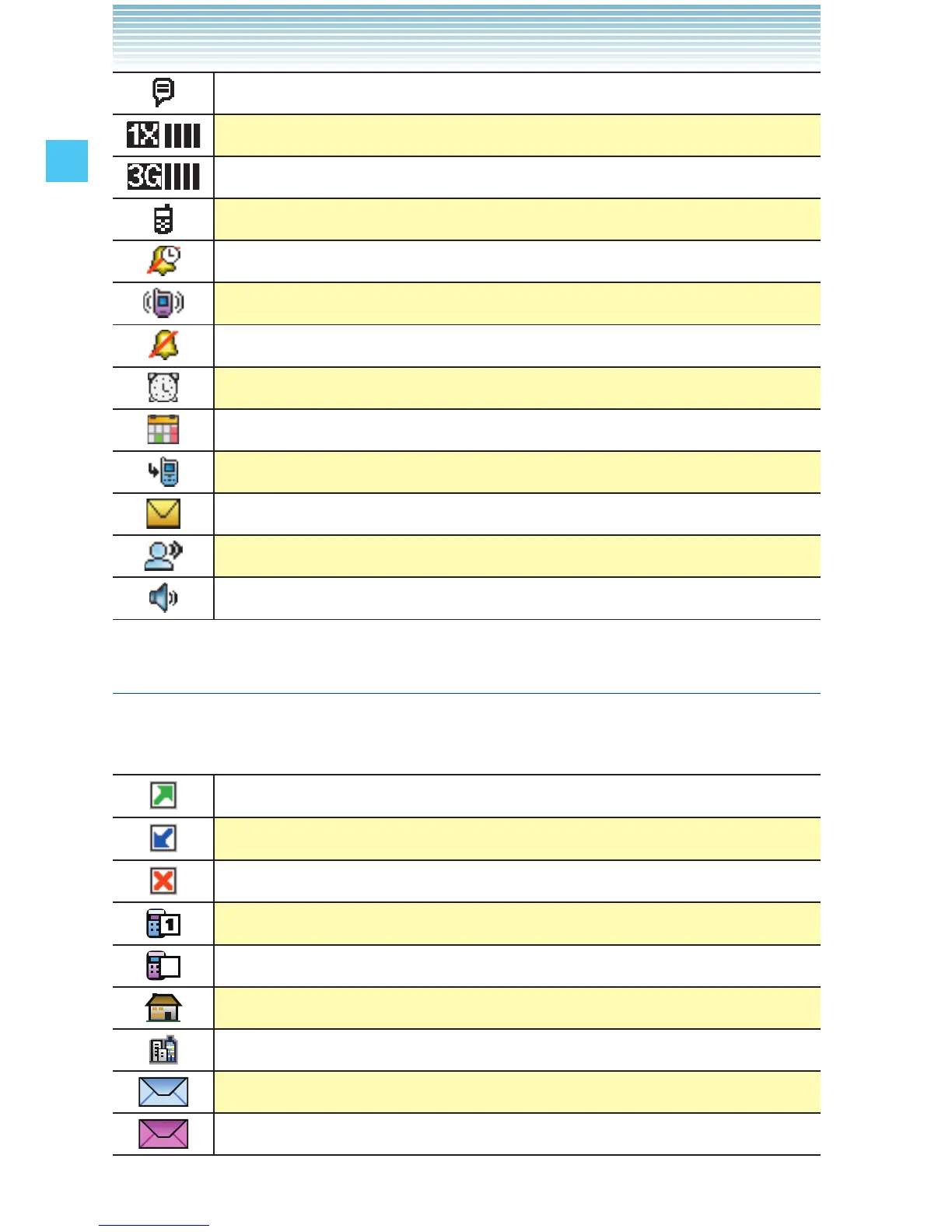 The following icons are displayed in the Recent Calls lists (Missed,