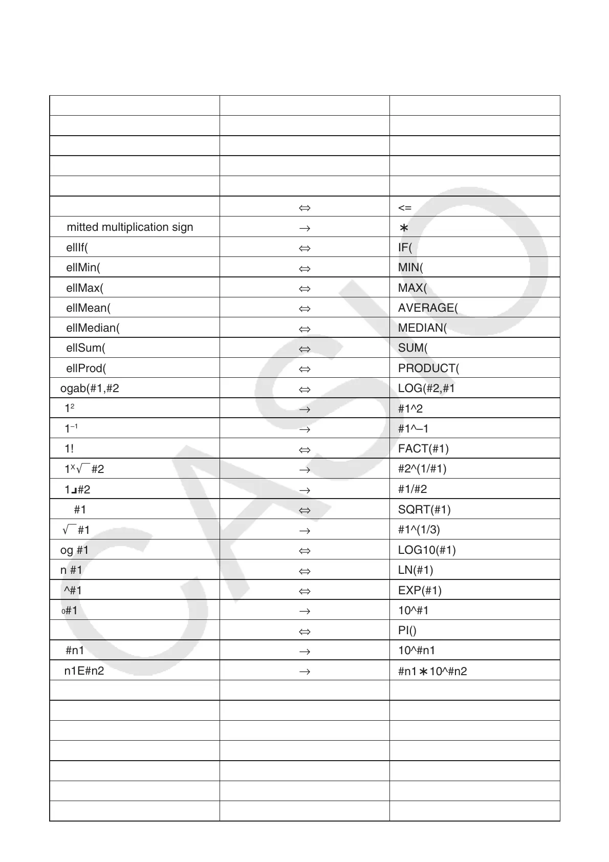 The table below shows how some formulas may be modified automatically when a paste operation