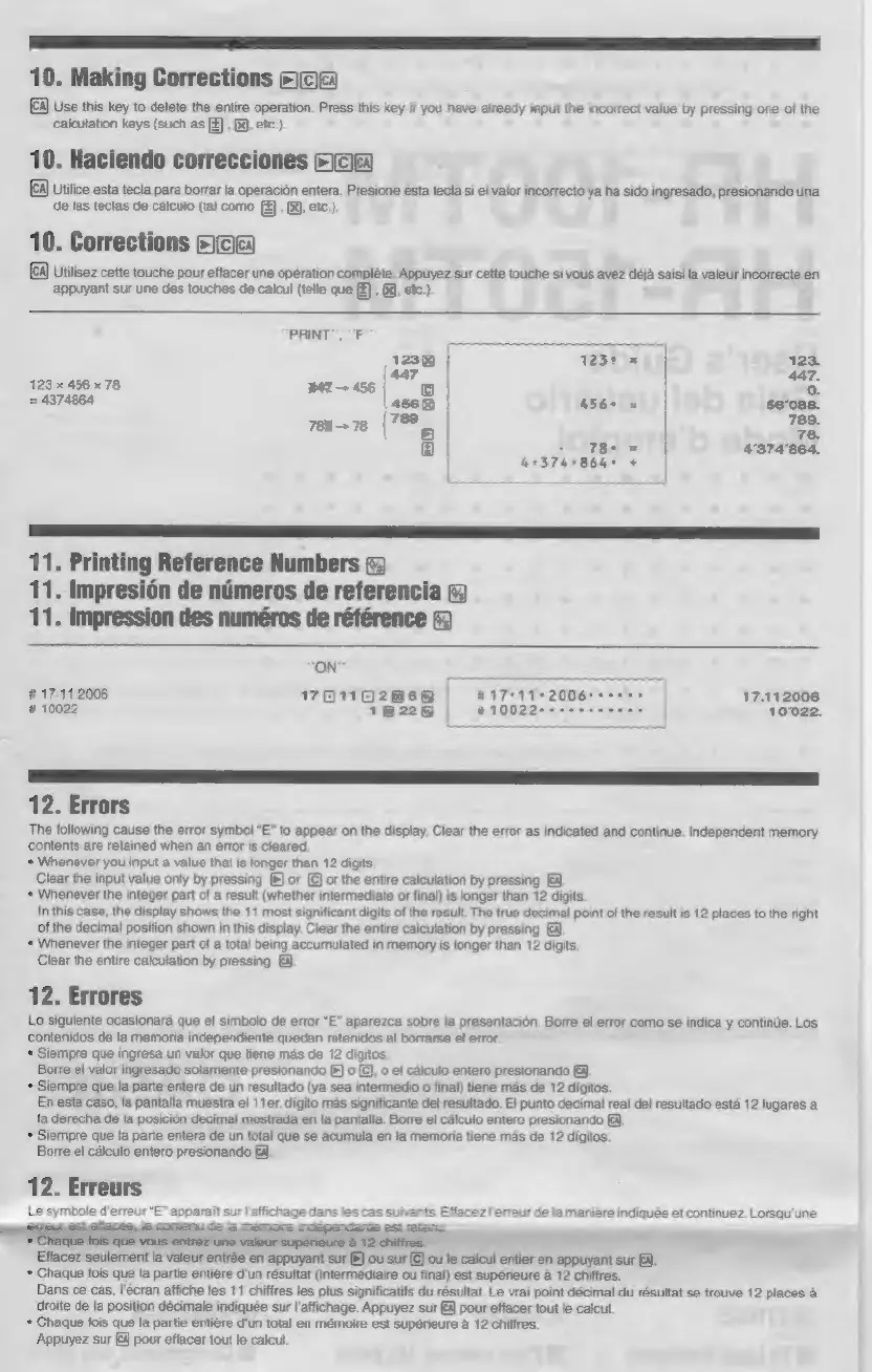 Casio HR-100TM - Making Corrections; Printing Reference Numbers; Error Handling Procedures