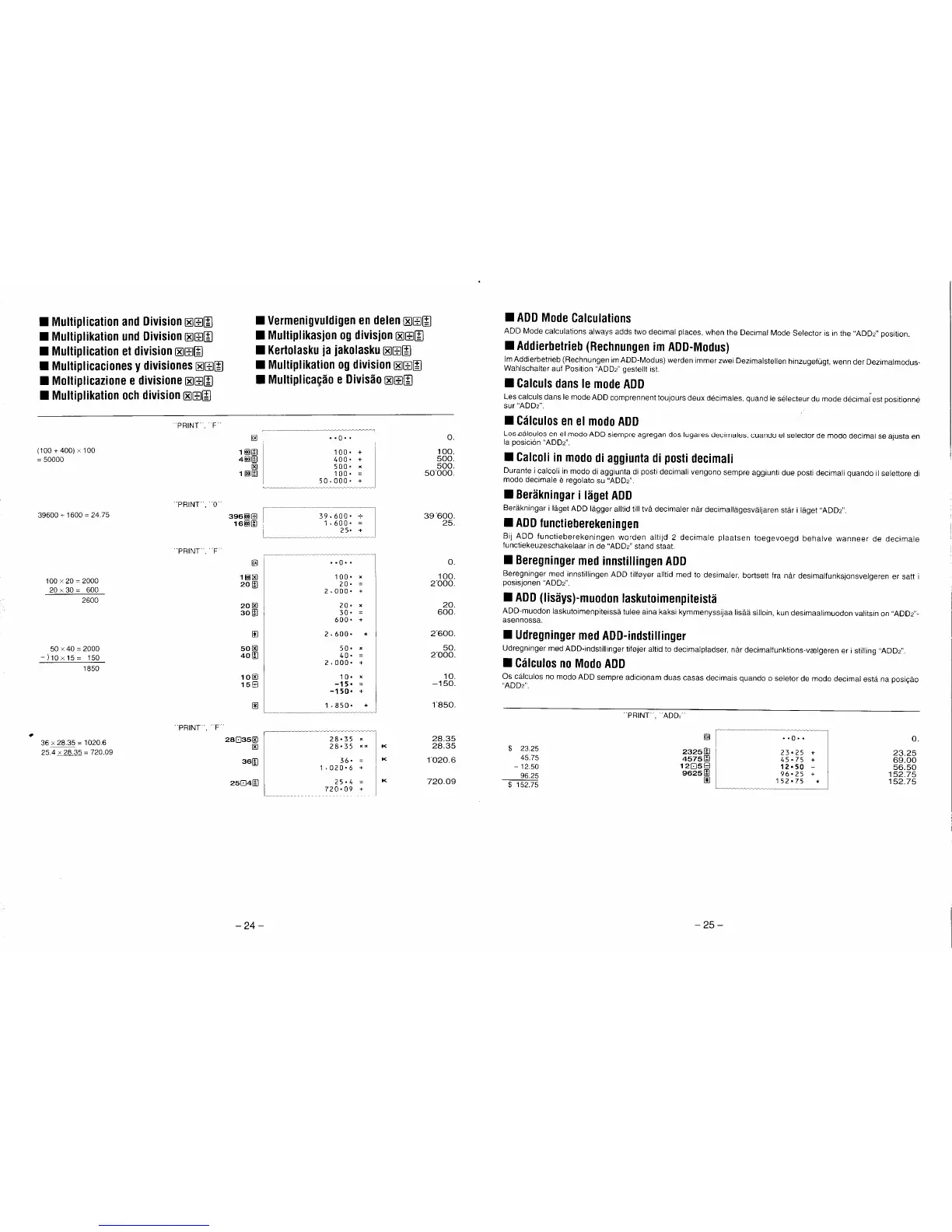 Casio HR-150TER - Multiplication and Division; ADD Mode Calculations