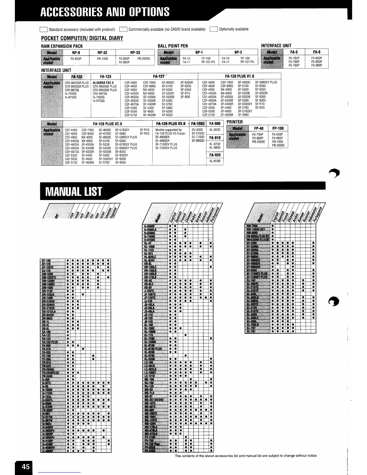 Casio INTERFACE UNIT CONVERSION LIST DIARY - Accessories and Options