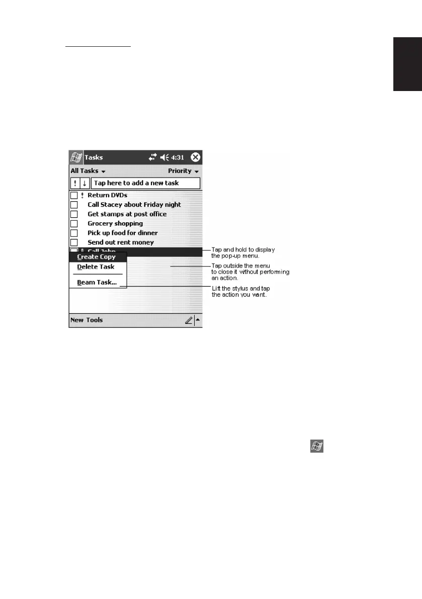 menu appears, lift the stylus, and tap the action you want to perform. Or tap