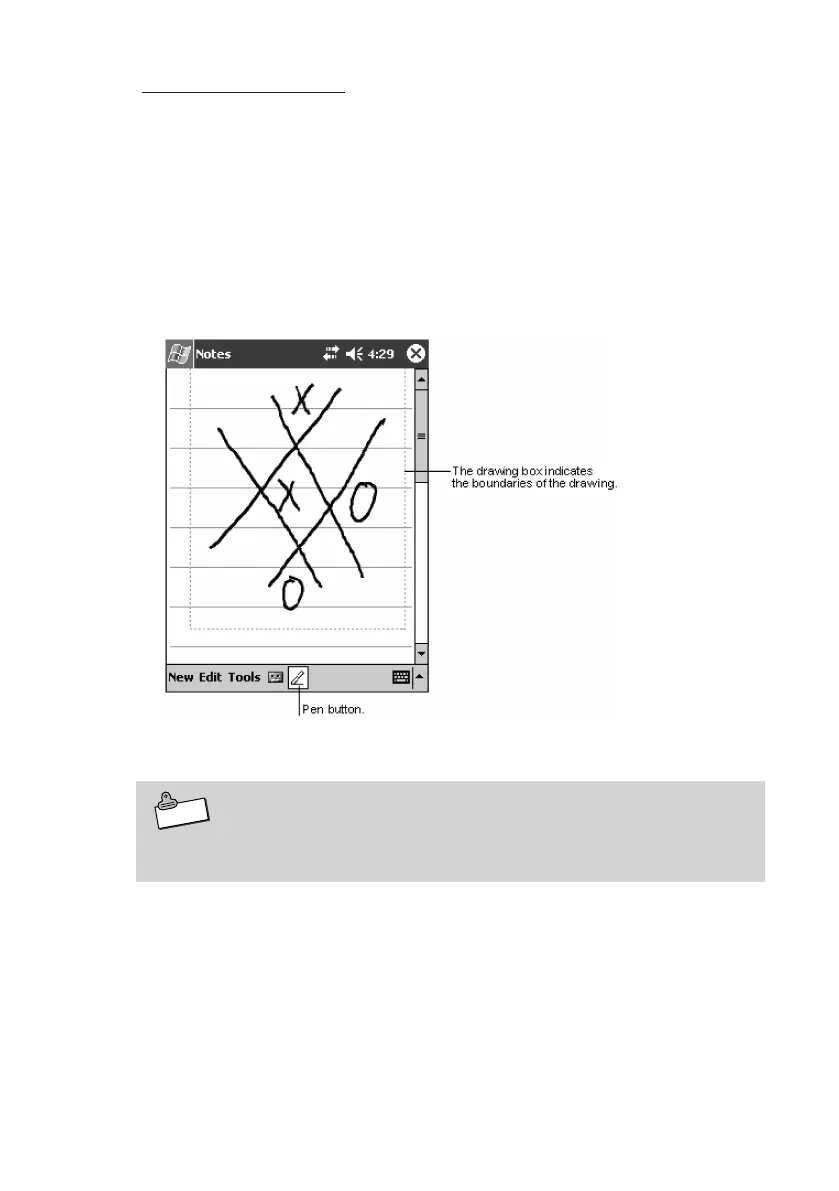 • Cross three ruled lines on your first stroke. A drawing box appears. Subsequent