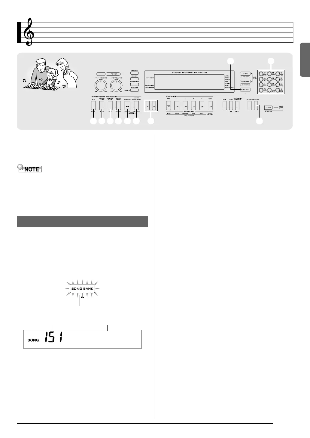 • See page E-75 for information about song numbers and