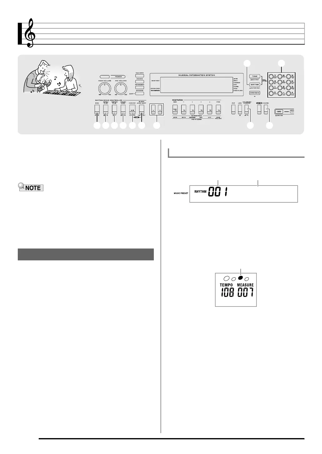 Your Digital Keyboard comes with a variety of built-in rhythms,