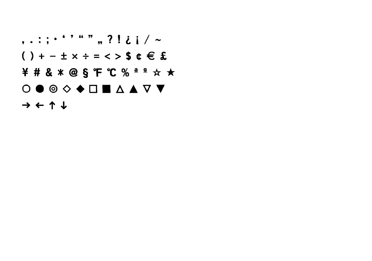 Character sizes: 1 × 1, 1 × 2, 1 × 3, 1 × 4, 1 × 5, 1 × 6, 2 × 1, 2 × 2, 2 × 3, 2 × 4,