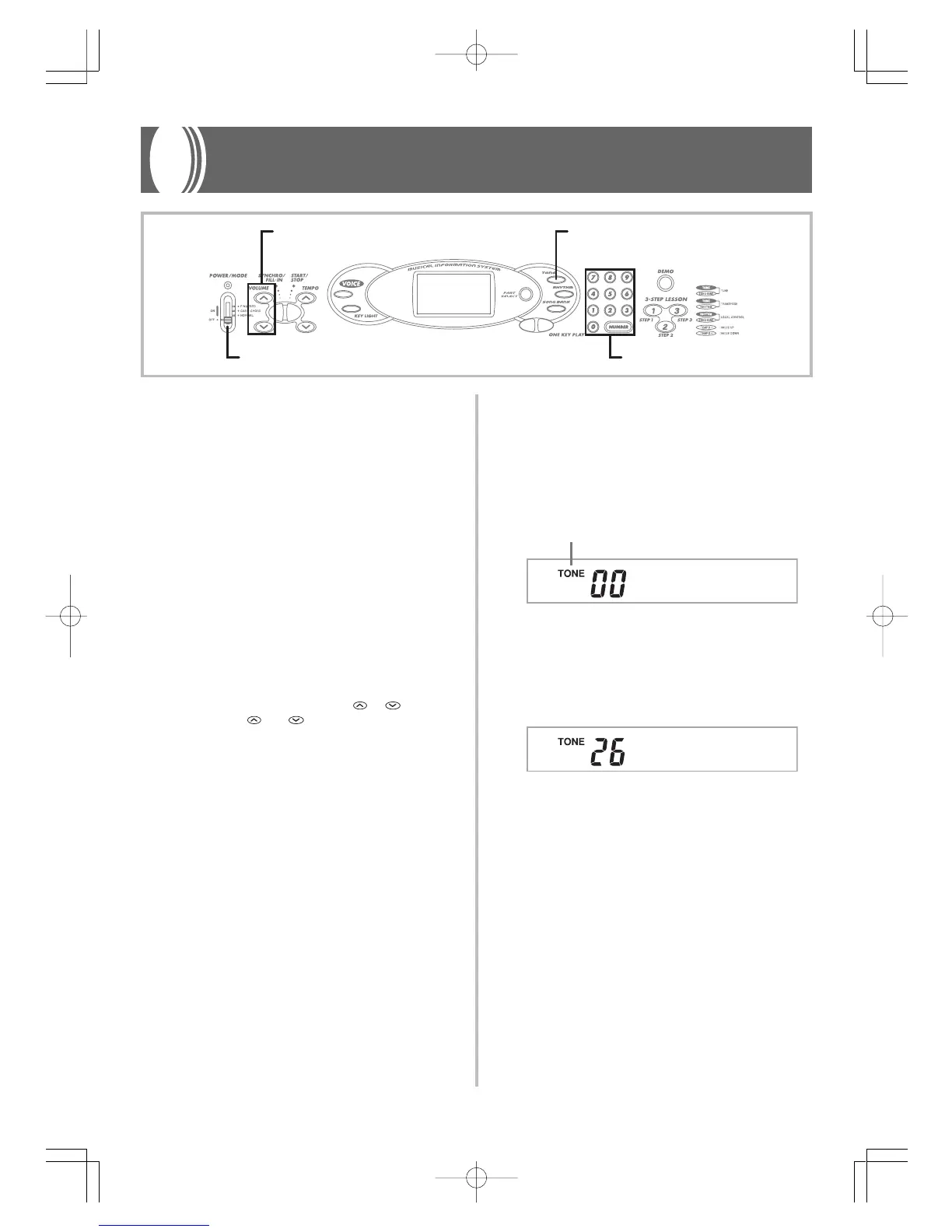 Example: To select “26 ACOUSTIC BASS”, input 2 and