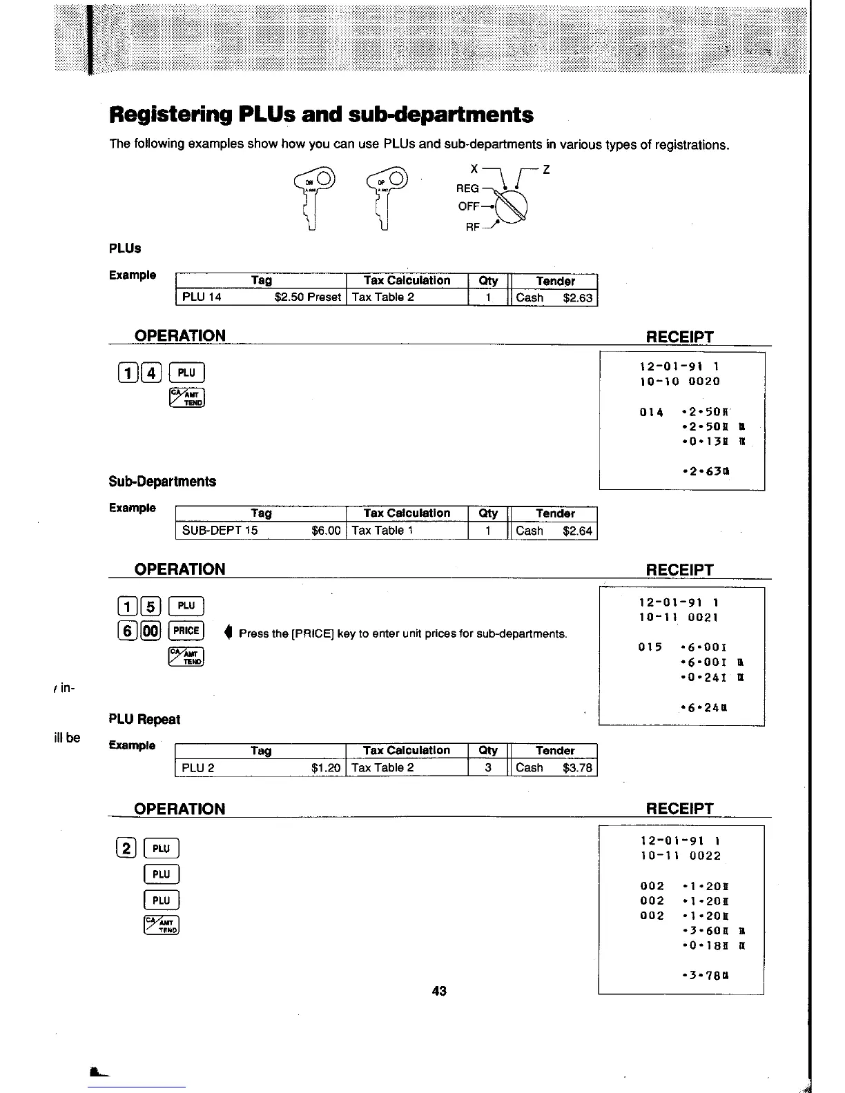 Casio PCR-408 - Registering Plus and Sub-Departments