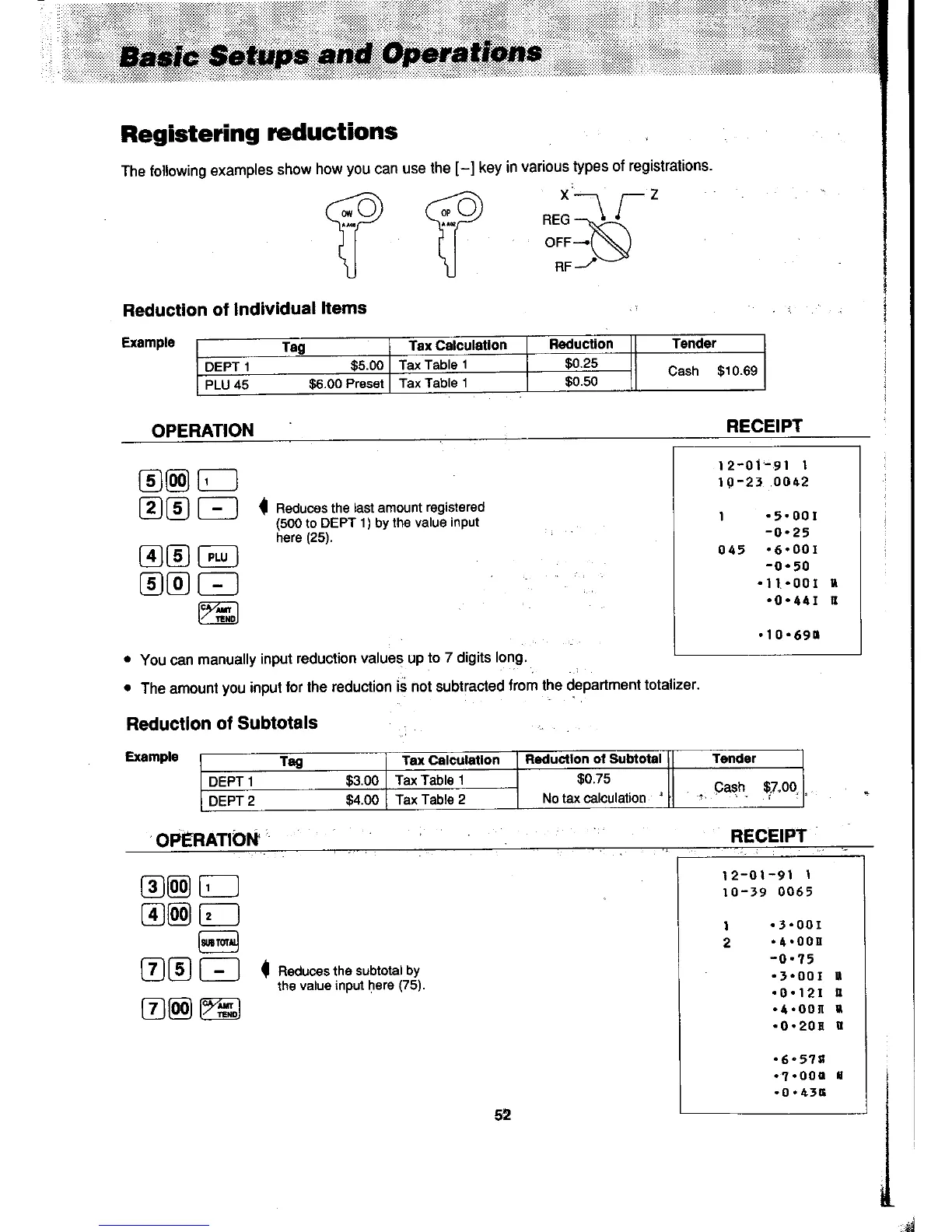 Casio PCR-408 - Reduction of Individual Items; Reduction of Subtotals