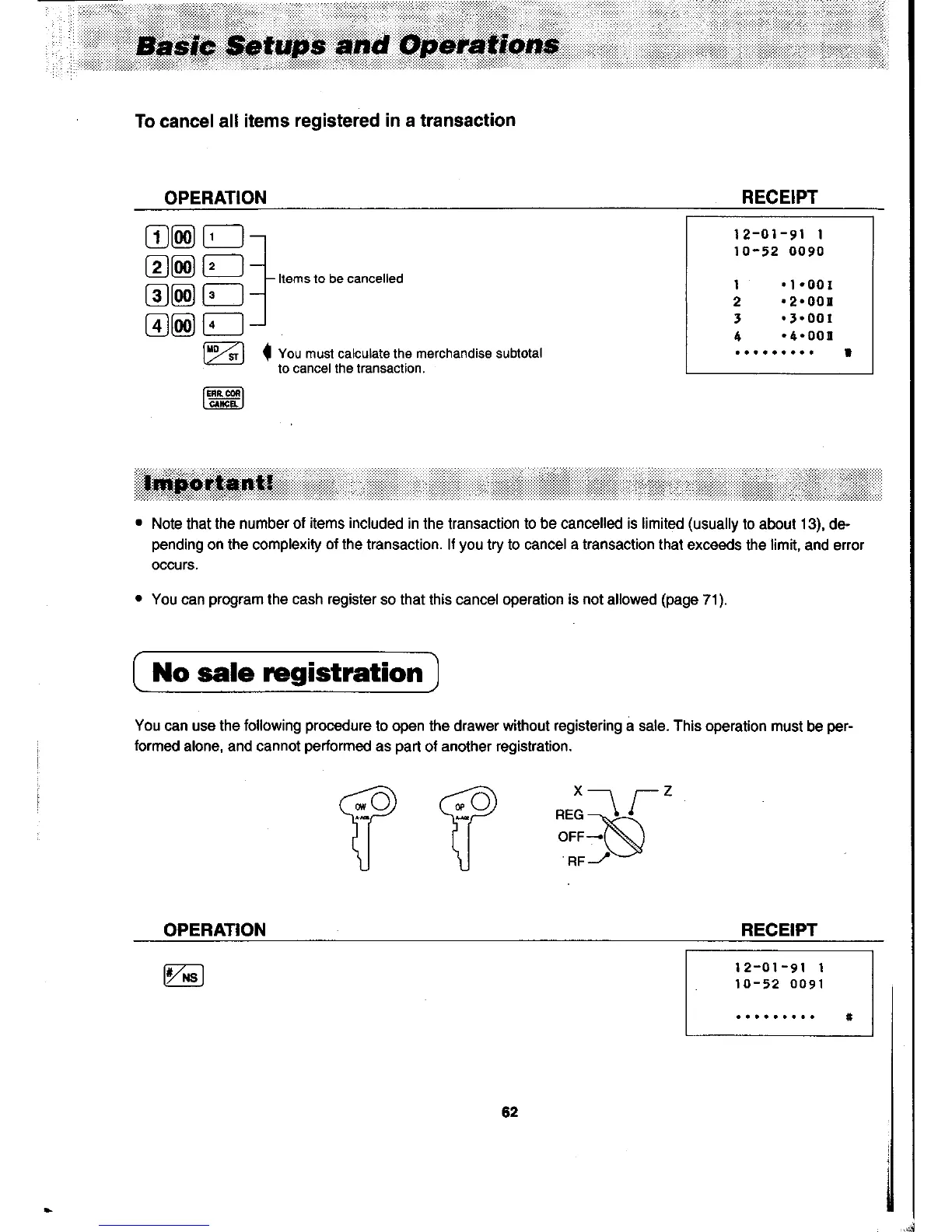 Casio PCR-408 - Cancelling Transaction Items; No Sale Registration