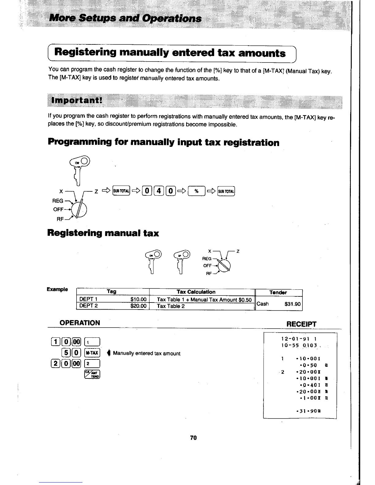 Casio PCR-408 - Registering Manually Entered Tax Amounts; Programming for Manual Tax Input