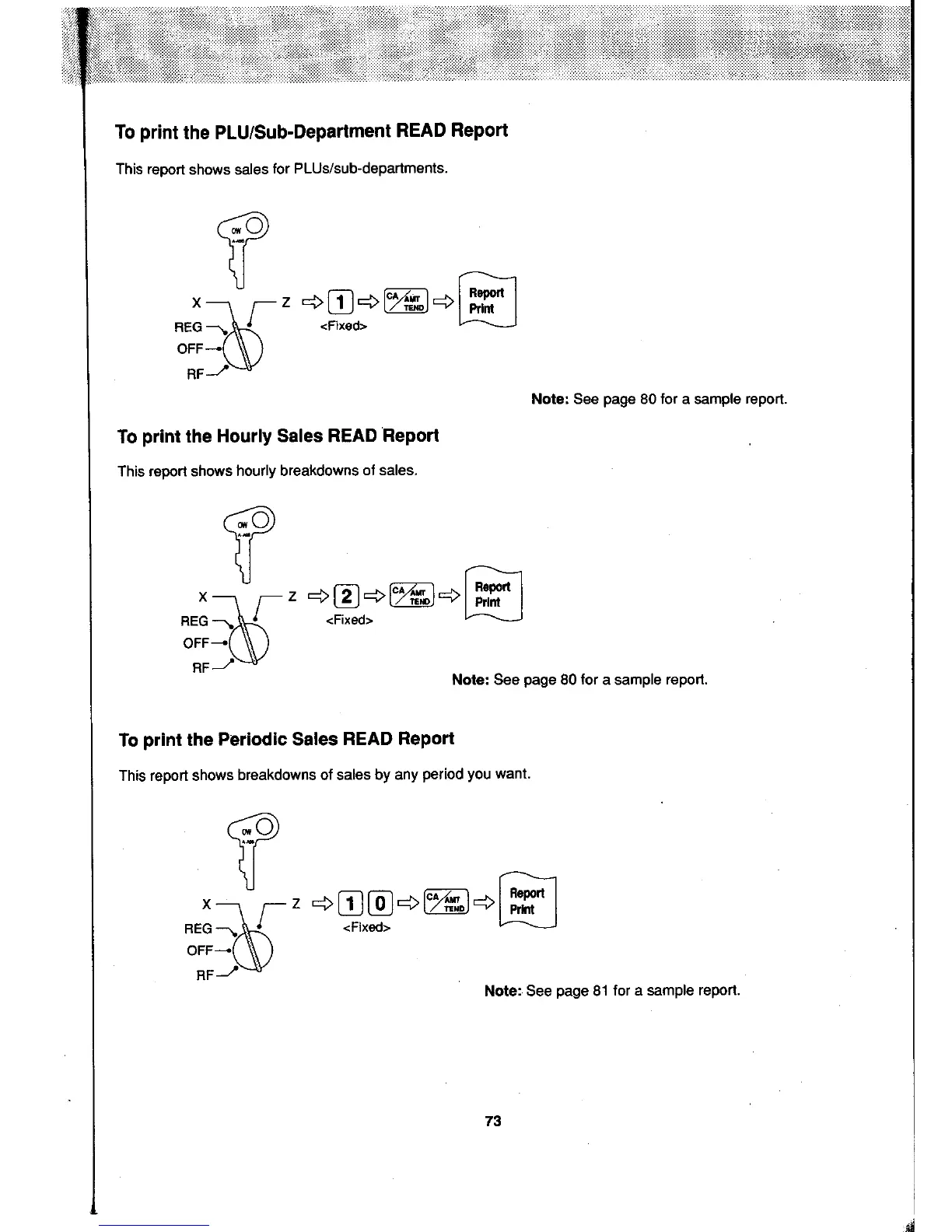 Casio PCR-408 - To Print the Plu;Sub-Department READ Report; To Print the Hourly Sales READ Report; To Print the Periodic Sales READ Report