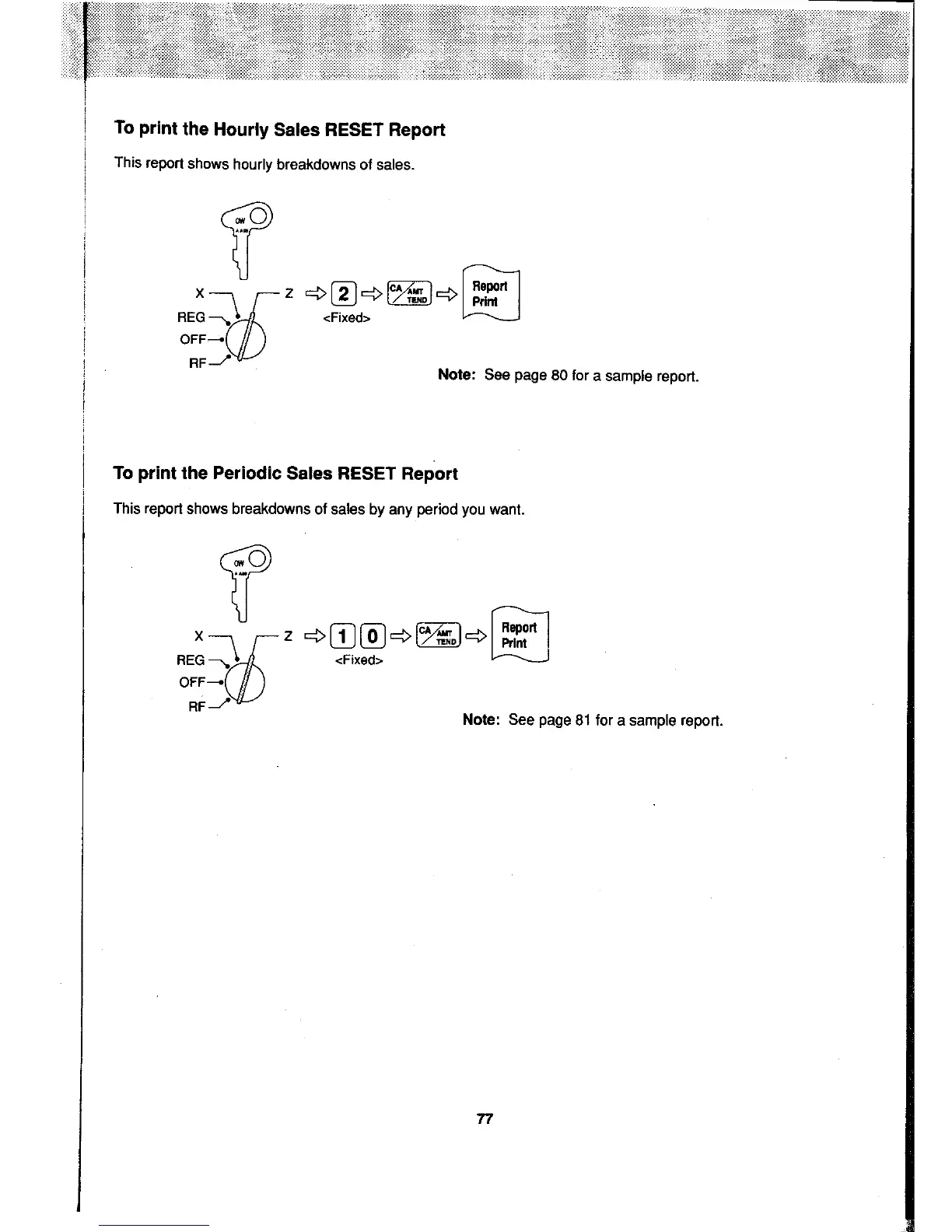 Casio PCR-408 - To Print the Hourly Sales RESET Report; To Print the Periodic Sales RESET Report