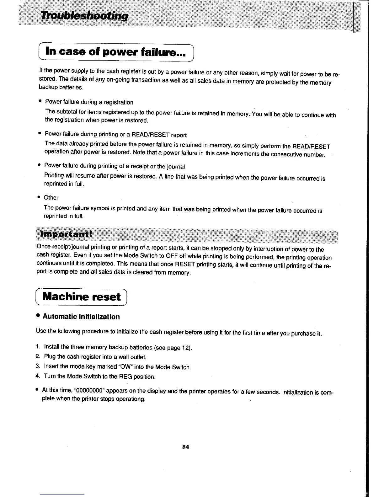 Casio PCR-408 - Power Failure Procedures; Machine Reset Procedures