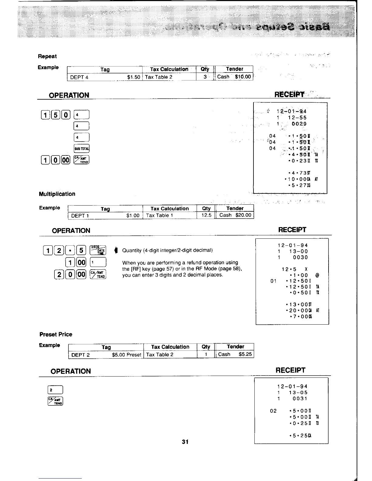 Casio PCR-450 - Repeat; Multiplication; Preset Price