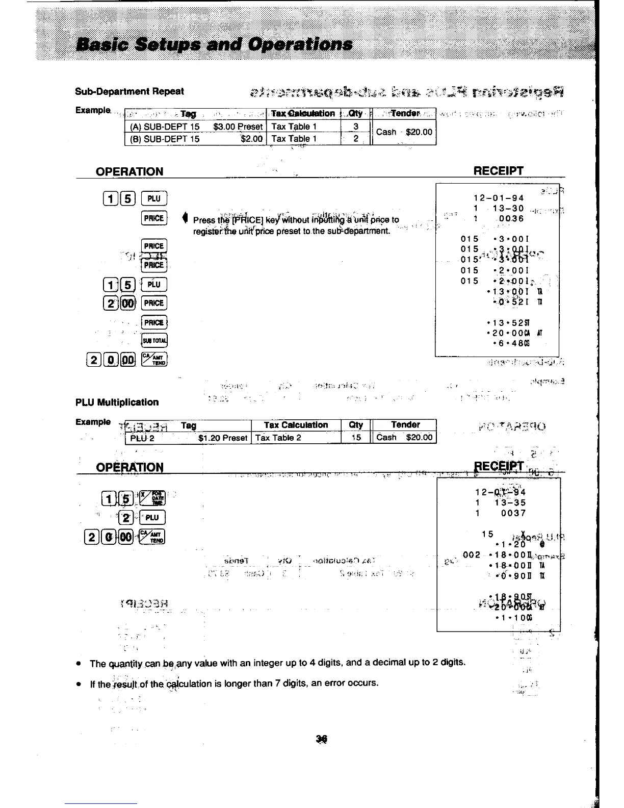 Casio PCR-450 - Sub-Department Repeat; PLU Multiplication