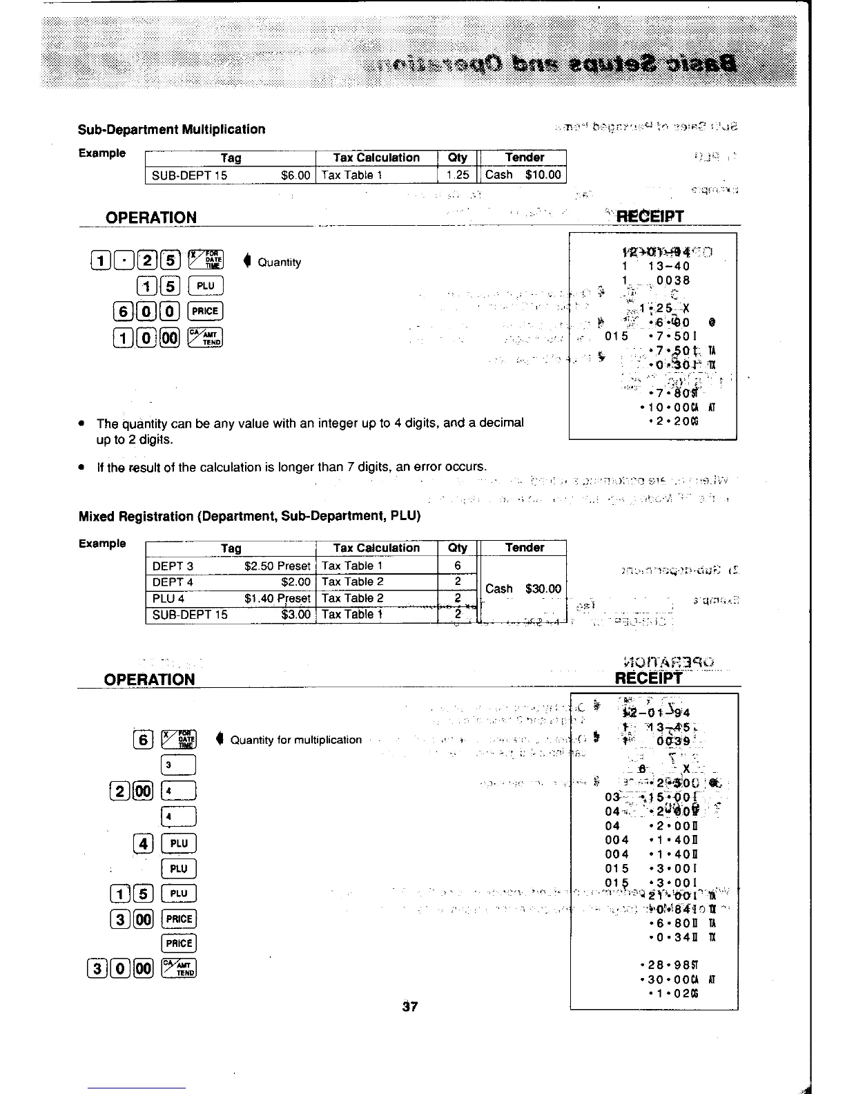 Casio PCR-450 - Sub-Department Multiplication; Mixed Registration (Department, Sub-Department, PLU)