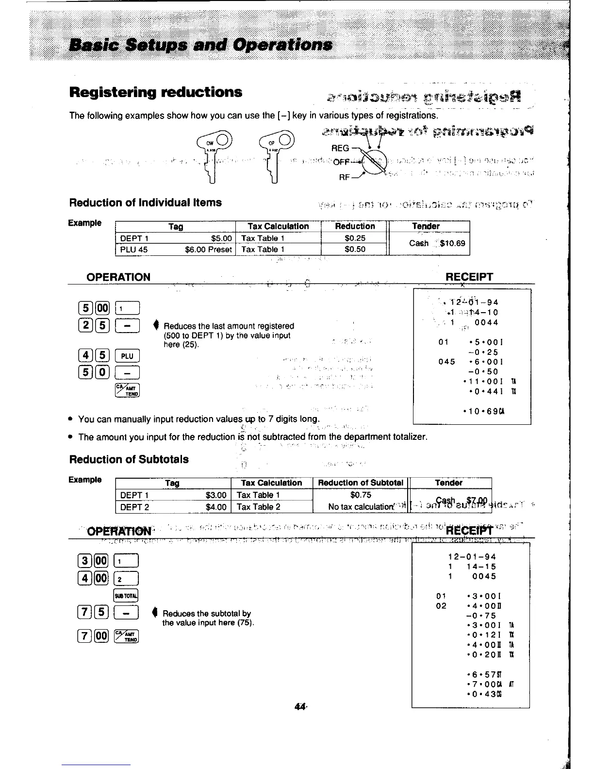 Casio PCR-450 - Reduction of Individual Items; Reduction of Subtotals