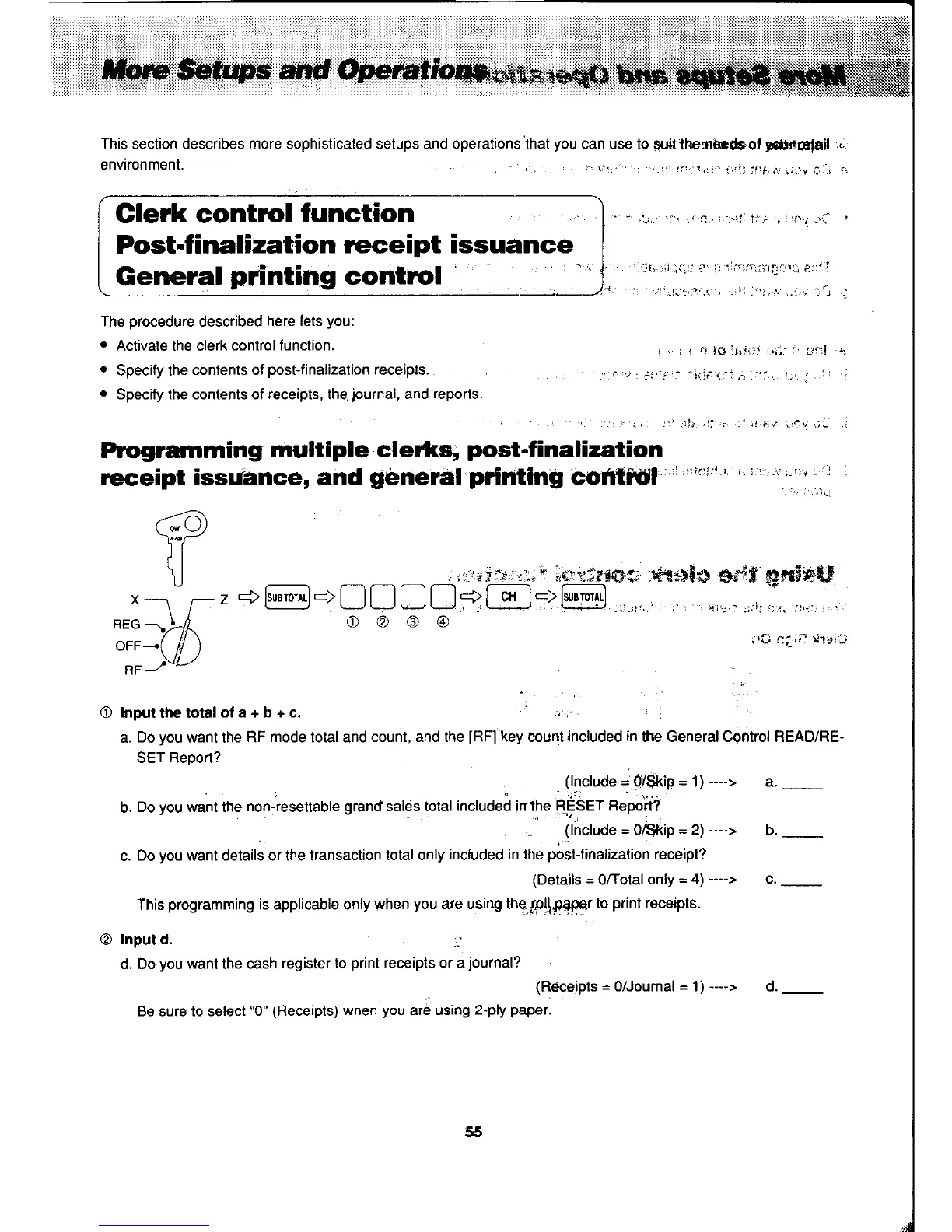 Casio PCR-450 - Clerk Control Function; Post-Finalization Receipt Issuance; General Printing Control; Programming Multiple Clerks, Post-Finalization Receipt Issuance, and General Printing Control