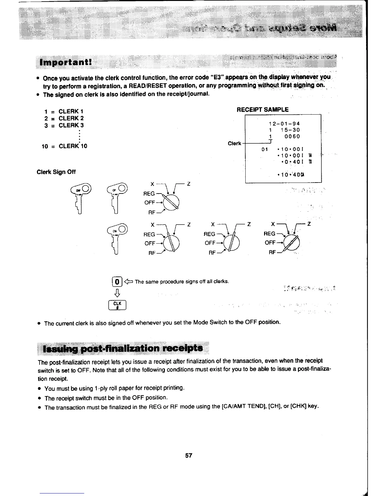 Casio PCR-450 - Clerk Sign off; Issuing Post-Finalization Receipts