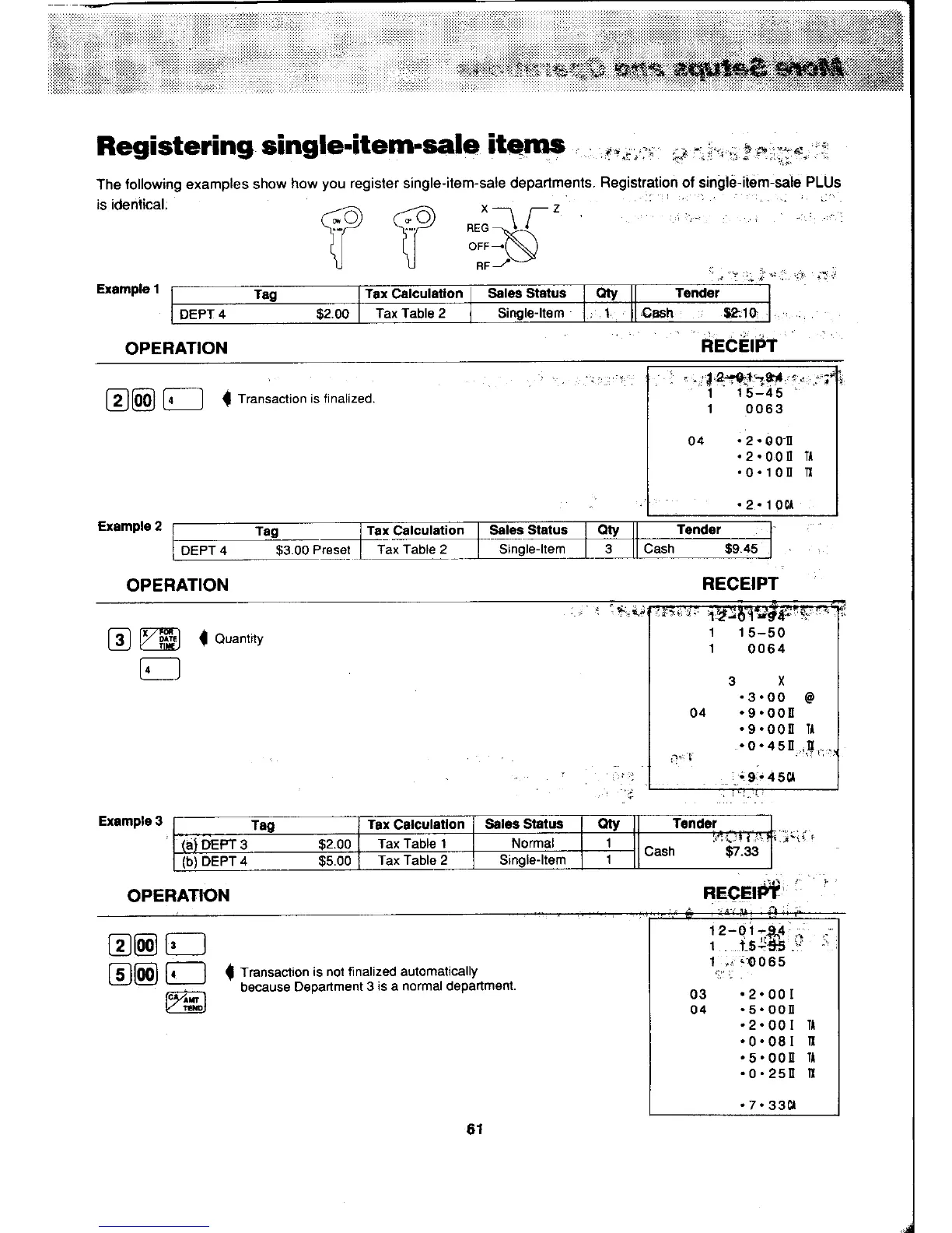 Casio PCR-450 - Registering Single-Item-Sale Items