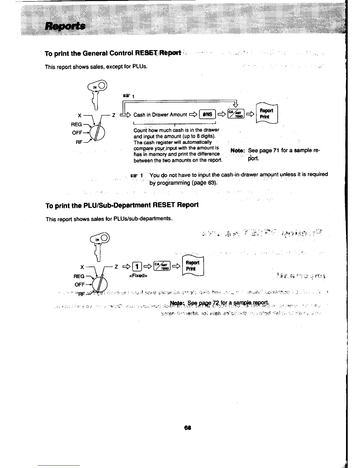 Casio PCR-450 - To Print the General Control Reset Report; To Print the Plu;Sub-Department Reset Report