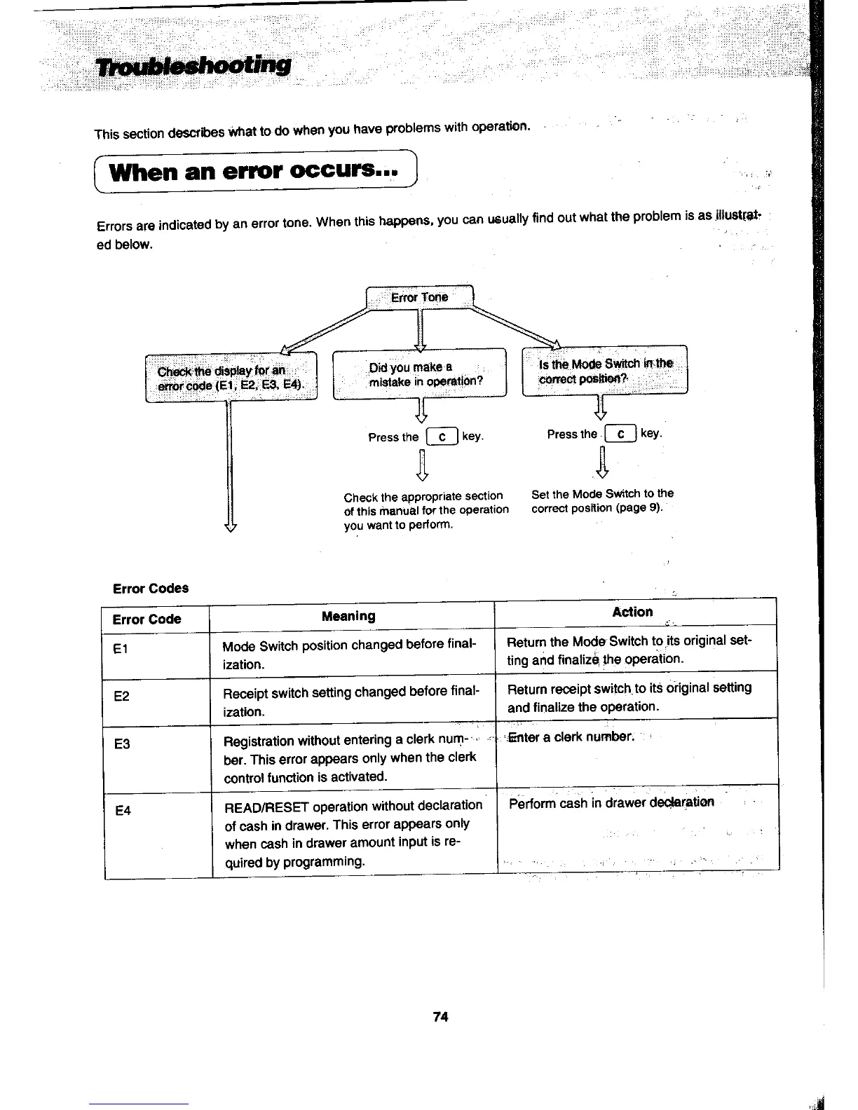 Casio PCR-450 - Troubleshooting; When an Error Occurs