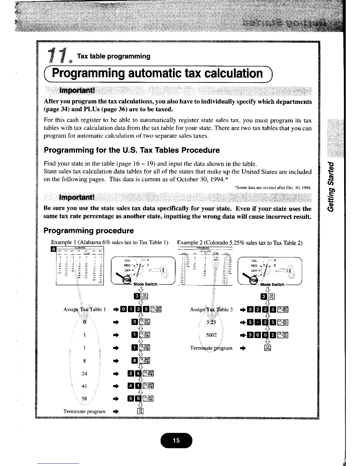 Casio PCR-460 - Tax Table Programming; Programming Automatic Tax Calculation; Programming Procedure